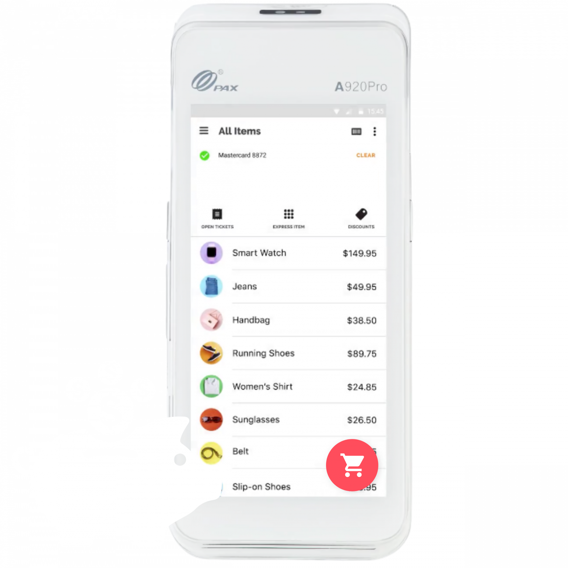 Modernize your storefront with PAX’s most advanced smart solution. This full point of sale includes a 12.5″ HD touchscreen. 4.3″ customer-facing touchscreen, 4G and wifi connectivity, receipt printer, and barcode scanner.